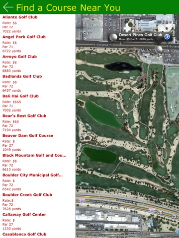 With Golf Finder Las Vegas, you get detailed golf course information for over 50 public courses in Las Vegas and surrounding areas. Review golf courses that are near your hotel by activating the "Find a Course Near You" feature. Locals will like it as well when they stake out their next weekender. Review the course details and comments while planning your golf outing. Just scroll over the map and check out the cost ratings of each course. Post your own scores and photos from your round or view others. Reserve your tee time from your iPad or iPhone now!