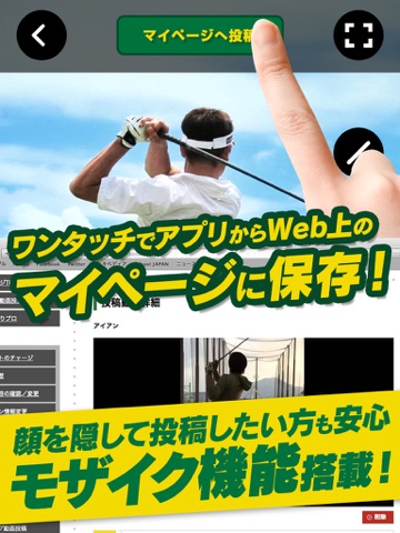 更に!投稿したスイング動画に対し、男女複数プロ(ツアープロ/レッスンプロ)からレッスンコメントが届く今までにない全く新しいゴルフスイング撮影アプリです。