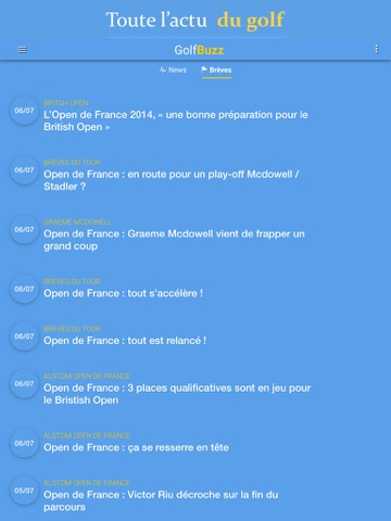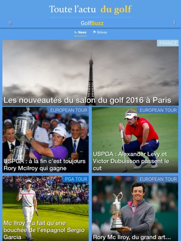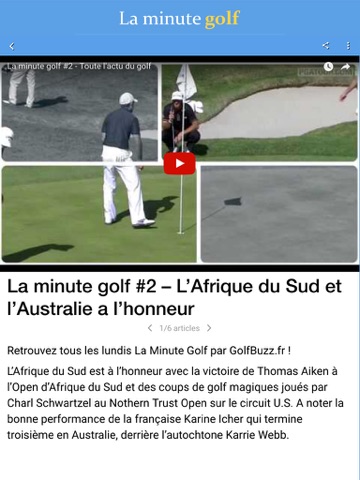 Retrouvez toute lactualité du golf des circuits Européens, U.S, Féminins & toutes les dernières tendances modes, applications de golf. Regardez en une minute maximum le résumé des résultats des tournois et le buzz via La Minute Golf, lémission GolfBuzz.fr. Activez les notifications pour être informés en temps réel.