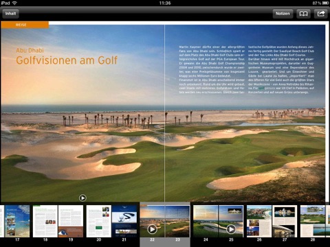 golfgenuss wurde entwickelt für die Mehrheit der Golfer – nämlich für alle Golfer, die mit Genuss und zur Entspannung Golf spielen. golfgenuss überzeugt durch vorzüglich bebilderte Reportagen, insbesondere über die schönsten Reiseziele für Golfer. Dargestellt werden kompetent und unterhaltsam Themen und Ereignisse aus der Golfwelt. golfgenuss informiert über Trends, gibt umfassende Tipps und blickt auch hinter die Kulissen des Golfsports. Berichtet wird u.a. über Golf-Neuheiten, Equipment, aktuelle Golfmode und vieles mehr. Die App enthält im Vergleich zur Zeitschrift diverse zusätzliche Feature – von direkten Links bis hin zu Videos.