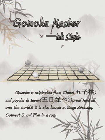 Gomoku is originated from China(五子棋) and popular in Japan(五目並べ),korea()and all over the world.It it is also known as Renju ,Gobang,Connect 5 and Five in a row.