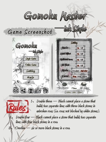 Global networking feature (GameCenter) let you play gomoku with players from around the world!