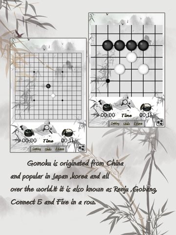 Gomoku is originated from China(五子棋) and popular in Japan(五目並べ),korea()and all over the world.It it is also known as Renju ,Gobang,Connect 5 and Five in a row.