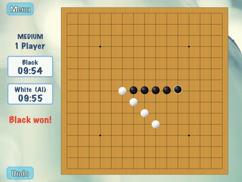 The variation of Gomoku supported in this game is free-style Gomoku. A player just needs to make a row of five or more stones to win.