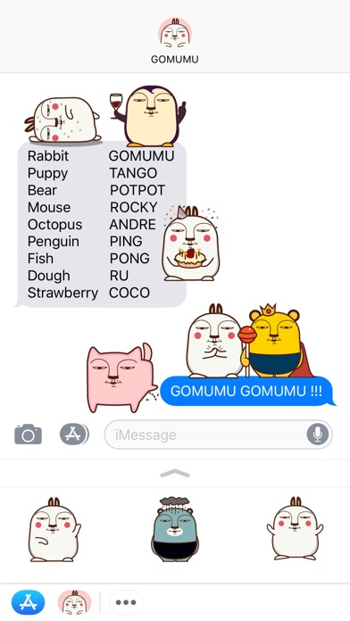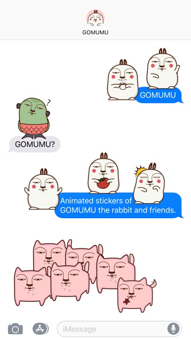 Animated stickers of GOMUMU the rabbit and friends.