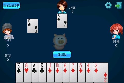 拱猪大战采用流行一副牌规则,可以选择自由亮牌、除羊全亮和全亮。NPC具有较高的人工智能,界面美观漂亮,支持视网膜,是您休闲娱乐的好选择!