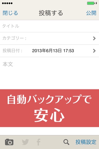 「アプリに保存」機能を使えば圏外(オフライン)でも一時保存OK。記事の編集もラクラクです。