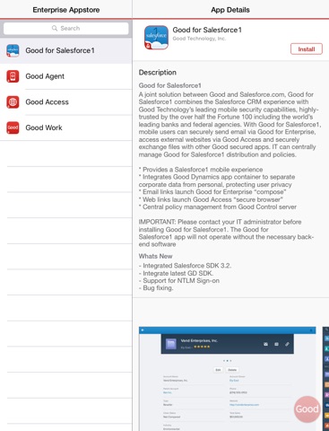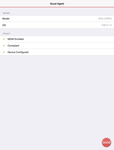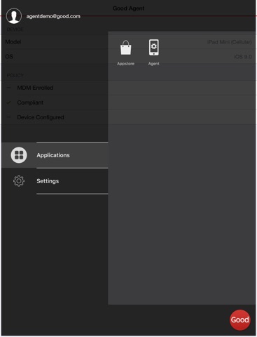 Important Note: Only use this application if your IT department directs you here. Good Agent works in conjunction with Good MDM, which must be configured by your corporate IT department. Good Agent will not function unless enabled by your IT department. If in doubt, please contact your IT administrator or helpdesk before installing Good Agent.