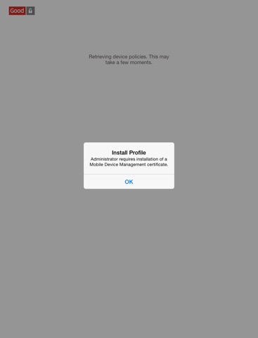 Good Agent quickly configures your device for access to your companys network, data, and apps. Installation of the Good Agent may be required in order to receive access to your corporate email or other workplace apps.