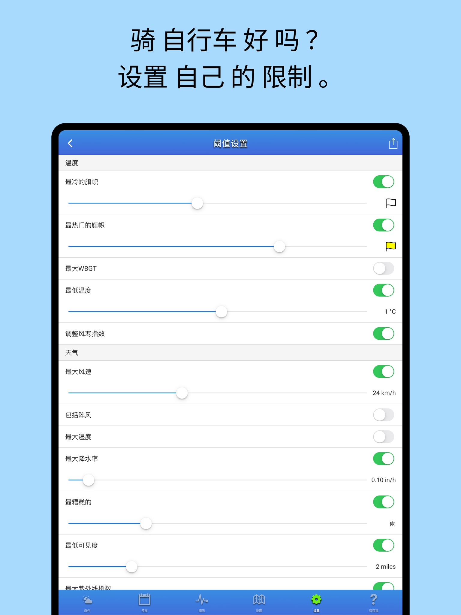 When will it be good to cycle? See weather forecasts, wet-bulb globe temperature, condition flags, and UV index, all in one convenient tool. Perfect for bike lovers, triathlon competitors, and more.