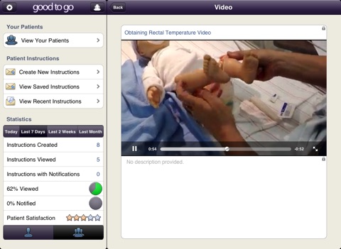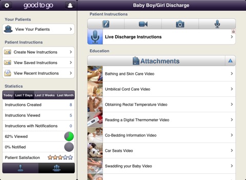The Good to Go application is used by care providers to improve patient understanding and compliance of discharge instructions, pre-admission orders, and other care directives, while increasing patient satisfaction and decreasing readmission rates.