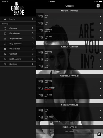 Mit der in good shape App wird die Trainingsplanung ganz schnell und einfach. TRX, Piloxing, PIIT; Indoor oder Outdoor in Wien. Das lässt sich mit der App jetzt ganz leicht organisieren. Darüber hinaus erhältst du Angebote und Infos als Erstes. Am besten gleich herunterladen!
