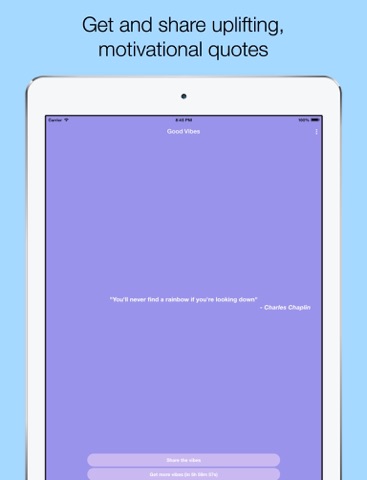 Feeling down? Feeling low? Good Vibes will provide you with an uplifting quote to brighten up your day. Share the quote with people who might need it, and get a new one instantly.