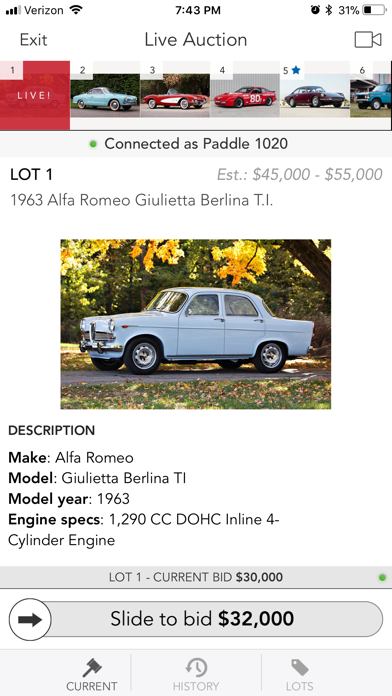 live auctions and our online only series, Geared Online. The app also provides simple bidder