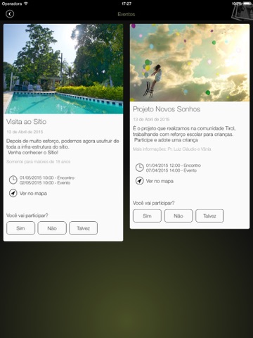 • Saber detalhes sobre os eventos (descrição, hora, localização)