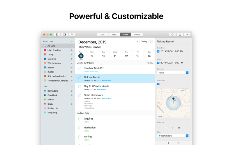 GoodTask provides various viewpoints to the things that you care and need to be done. Manage your tasks, projects and even your life better with GoodTask.