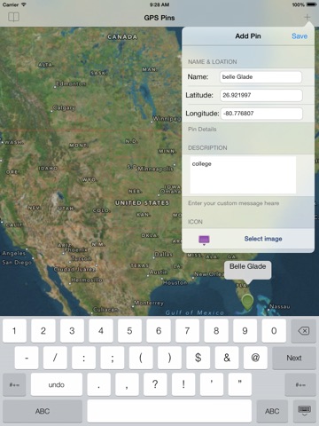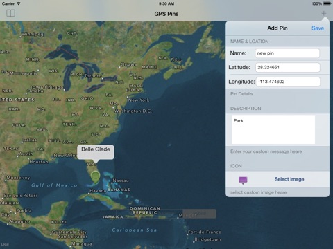 Goto your Latitude,longitude location on the map and add a Pin at your desired location with info and custom marker save them for feature use.