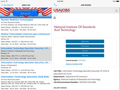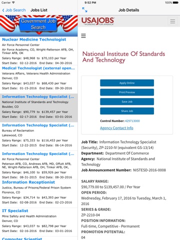 I found this app to be helpful when looking for government jobs. It is easy to use - you just enter the job you are looking for and your area, and from there the listings will appear. Salaries are shown, and you can apply online after that step. Highly recommend!