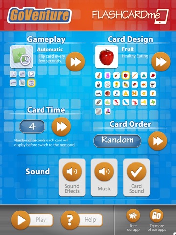 GoVenture FLASHCARDme is the best card flipping game for fun and learning. Includes hundreds of amazing cards and sounds. Flip cards automatically or by using touch, swipe, button, drag, and other gestures for practicing fine motor skills.