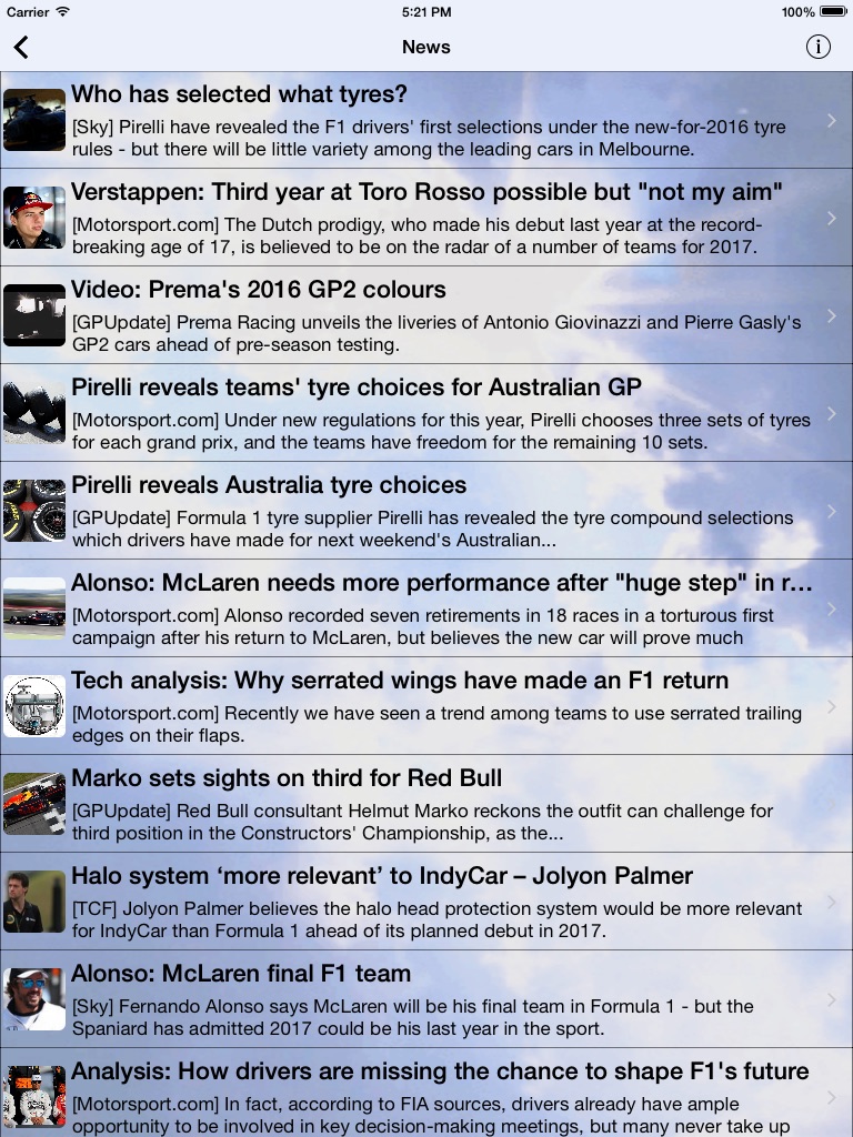 The GP Racing Fan app is for fans of Formula One motor racing, past and present. It is designed to add to your enjoyment of F1 by providing you with a fans-eye view, with sporting trivia at your fingertips and keep you up to date with the latest in the world of Grand Prix racing.
