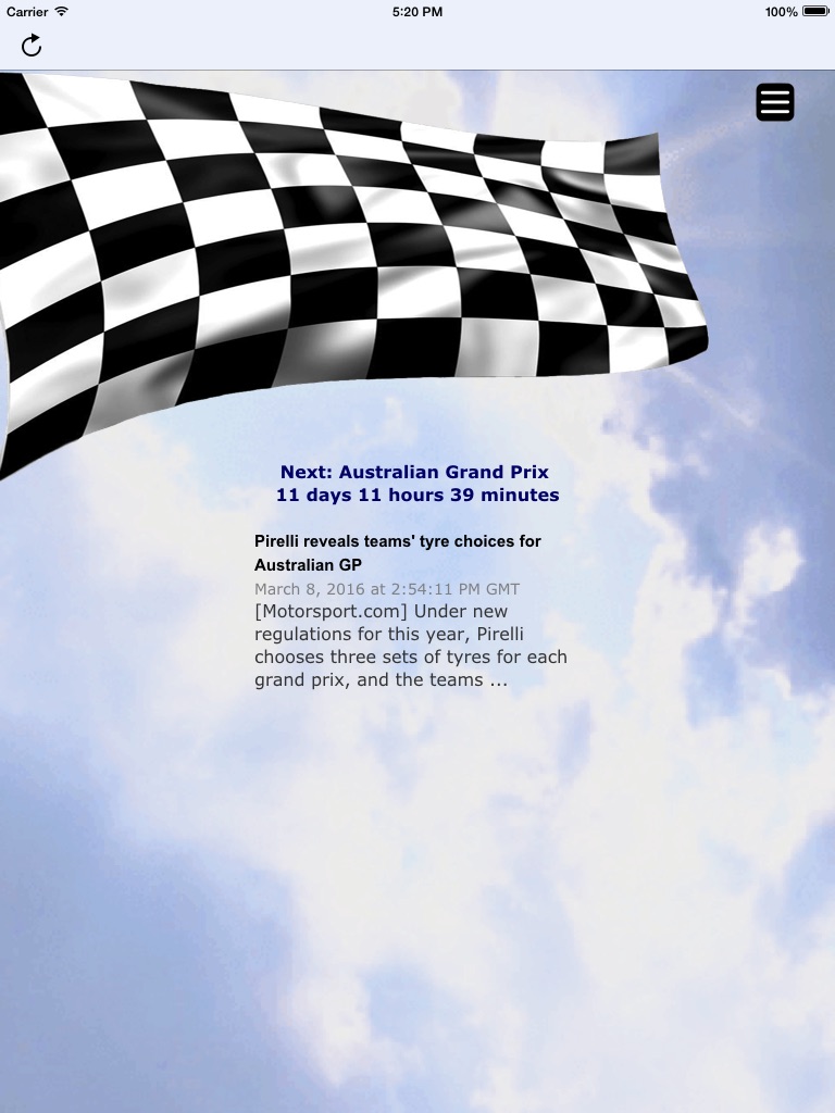 - Countdown timer to the next race