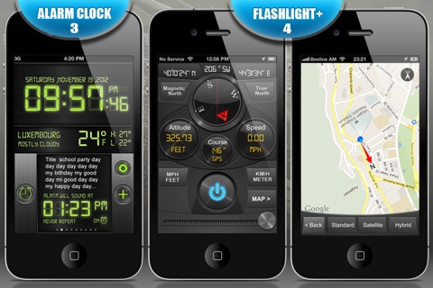 Compass, Flashlight, Speedometer, Altimeter, Course