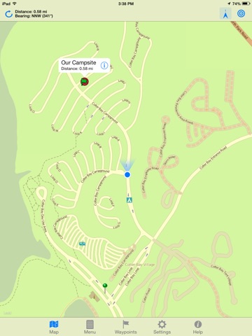 The apps built-in waypoint function allows you to store, map, and annotate your own custom GPS enabled destinations with just a touch on the map, and then get immediate turn-by-turn driving directions to your waypoints using the "GO" button.