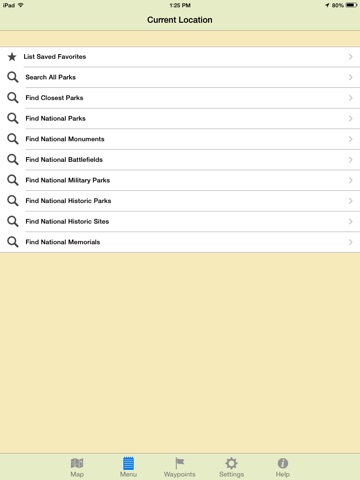 GPS mapping is at the heart of the app displaying park destinations and tracking your progress as you travel. A search menu lets you search for National Park properties close to you, or find park destinations near any city you plan to visit. For many parks, multiple destinations are included guiding you to entrance stations and visitor centers throughout the parks.
