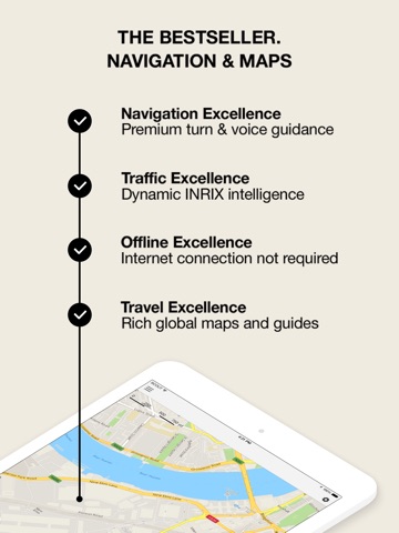 Global online maps and an entire country (incl. its city maps) for offline use included (upgradeable), all core app features available offline