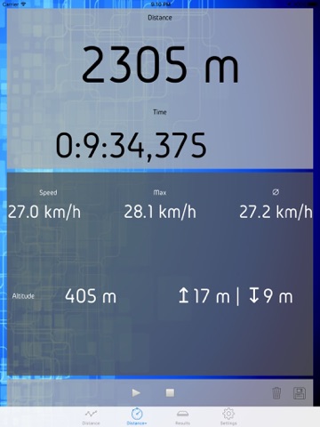 This app connects to a GPS satellite and converts the GPS data into distance, altitude and speed data. Furthermore, it is possible to switch between different units: