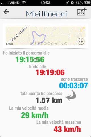 Una volta aperta lapp, si potrà misurare il proprio itinerario, al termine, premendo "stop" si potranno vedere le statistiche del percorso. Tutti questi dati potranno essere condivisi su Facebook e Twitter o inviati per email.