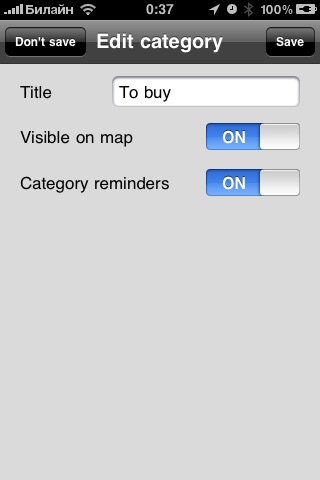 For addition of a new reminder simply touch a map view in the necessary point, keep a finger on the screen about 0,5 seconds. Further fill reminder parametres (heading, the text, distance and save it)