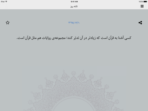 I really thanks the developer of this app. May god reward him! I recommend everyone to download this app and use it. I want to ask the developer of this app and all those who develop app to plz plz plz design more Islamic and Shia apps and add more languages ( most important English ) thanks خيلي عالي دست طراح اين اپ واقعأ درد نكنه. به اميد اپ هاي مفيد و بيشتر شما در آينده.