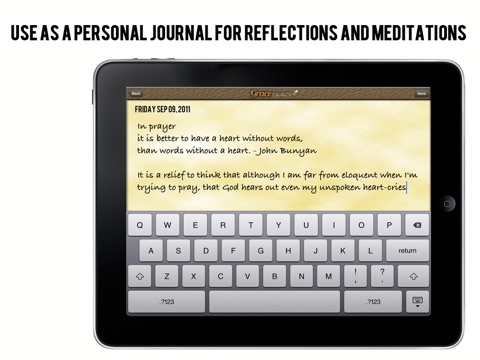 Grace Notes gives you a daily dose of inspiration that you can use as a journal starter. Wonderful for recording reflections and meditations, and for keeping track of important events and memories.