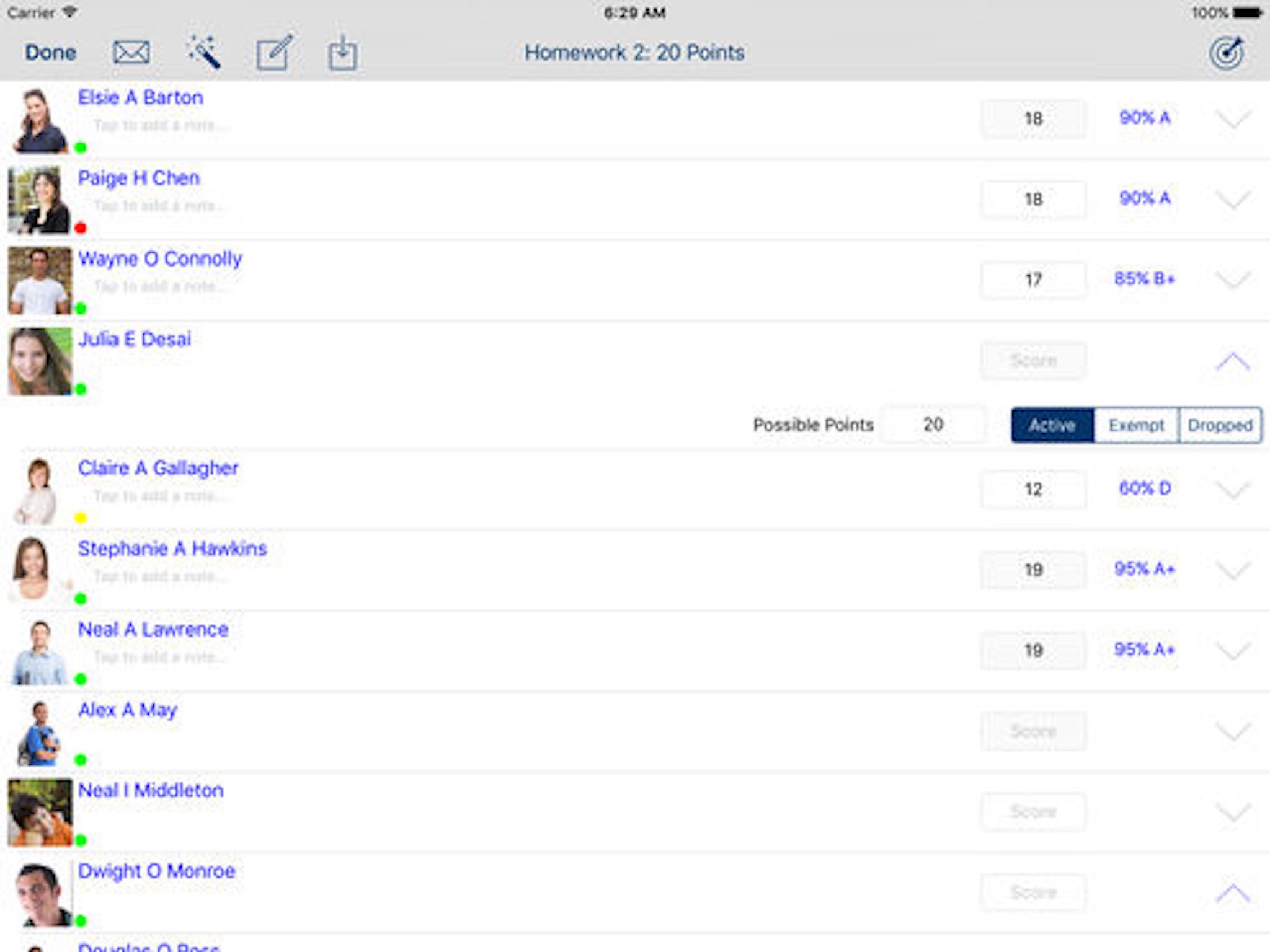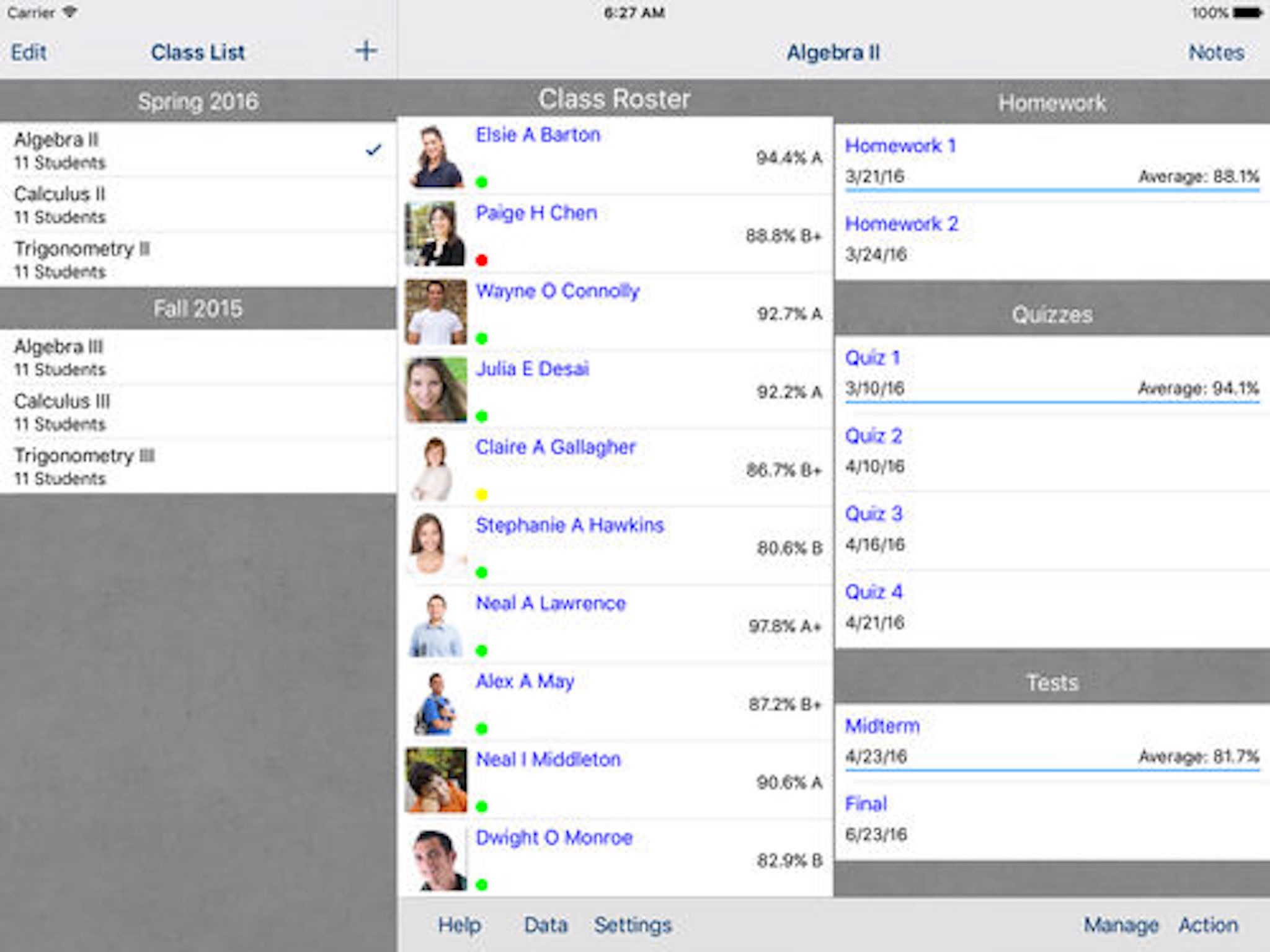 Great Ipad application with an excellent and responsive developer. This is my sixth electronic grade book. Ranks as one of the best