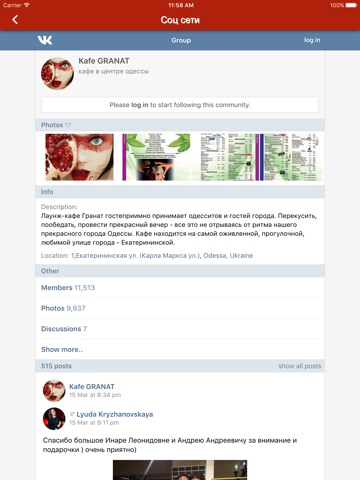 - Доступ к страничкам кафе GRANAT в ВКонтакте