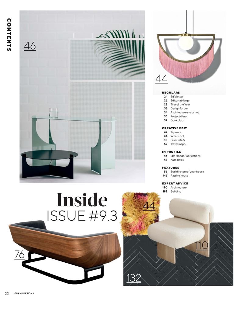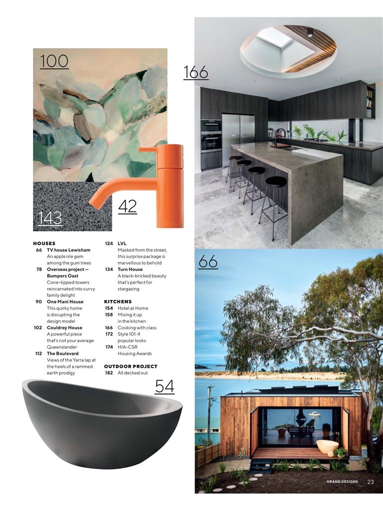 At Grand Designs Australia Magazine we believe in the transformative power of good design. Each issue Editors Peter Maddison and Kate St James scour the countryside to bring you the most stunning designer homes, many of which have not yet been seen on TV, and tell the roller coaster story of how design facilitates lifestyle. Our homes cover a diversity of styles and budgets; some new builds, some conversions, and some renovations. Each issue is a also sourcebook of quality design – complete with floor-plans, look guides, designers, contacts and signature products to inspire a rethink of your own home space.