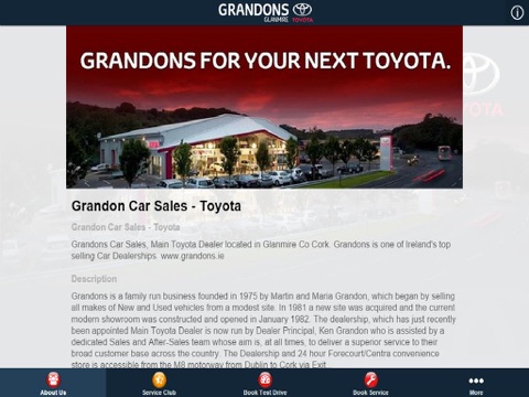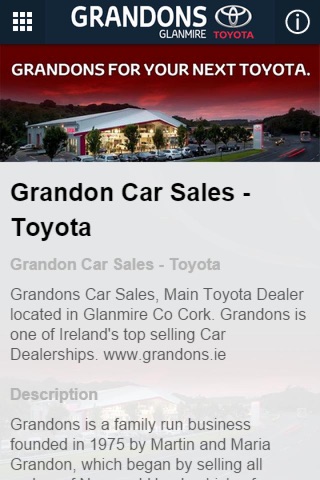 Grandons is one of Corks leading car dealers and stocks the Toyota brand. Download our fantastic app with special rewards from our service club.