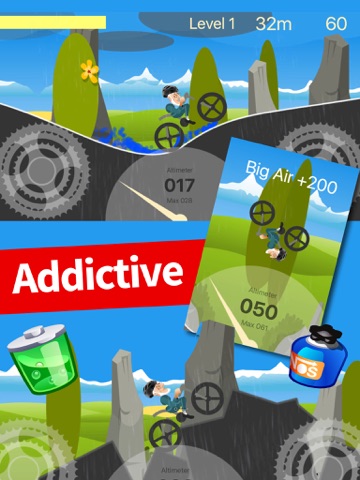 Tap the bottom left bicycle cog to pedal and lean backwards and the right cog to pedal and lean forwards. Remember this is a physics based bike game so just tap the controls and try to balance Grandpa when he’s in mid air.
