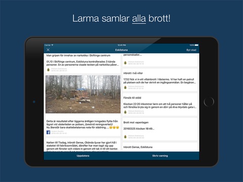 • Varning för brottslig verksamhet i Ditt närområde från Larmare, Polisen, Facebook, Blocket och andra appar.