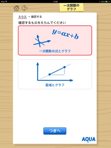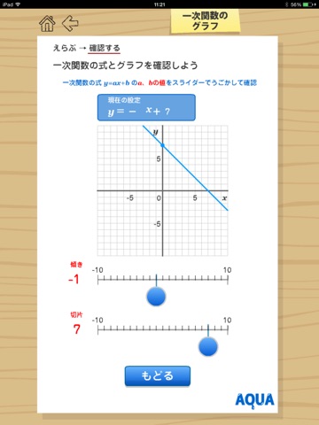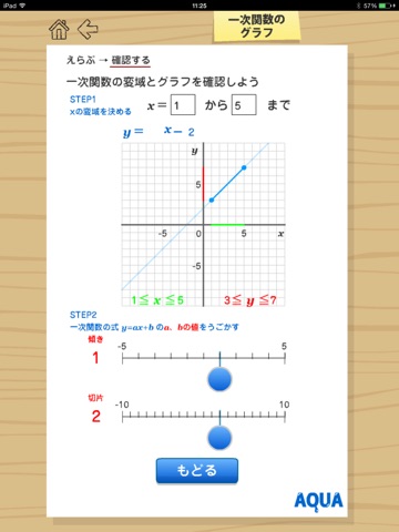 This app can learn "Graph of Linear Function". It is easier for you to use "AQUA menu app".