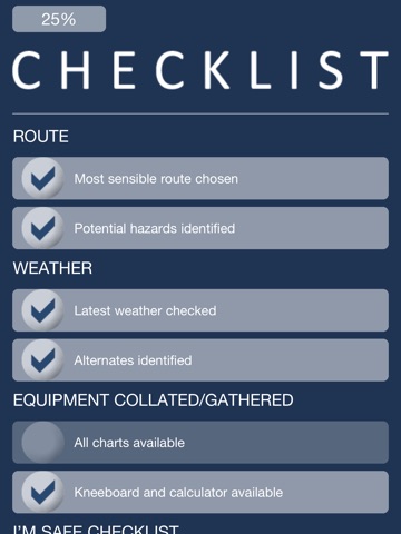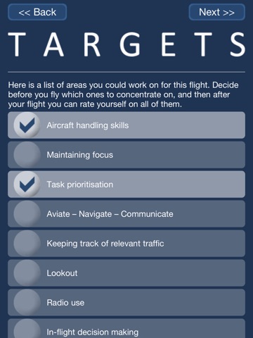 Graph My Flight helps you through the three stages of your flight. It has a comprehensive pre-flight checklist, it encourages you to concentrate on different aspects of your flying during your flight, and then you complete the process by evaluating your performance afterwards.