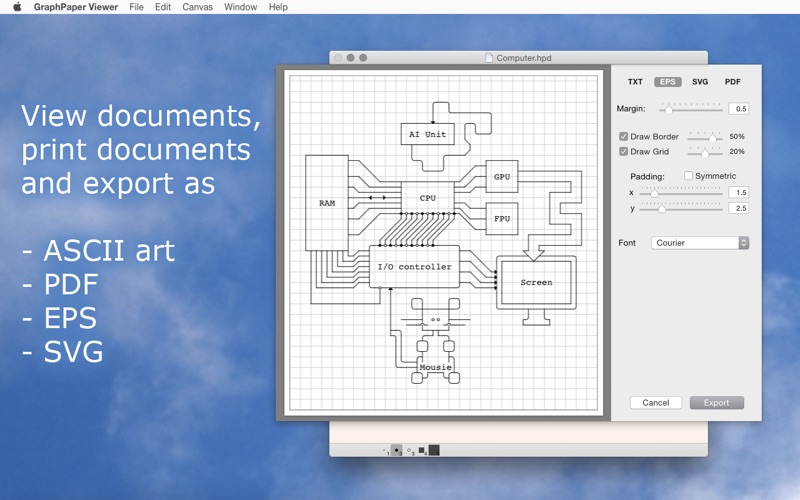 Graph Paper Viewer is a standalone application which allows you to view Graph Paper-Documents (.hpd)
