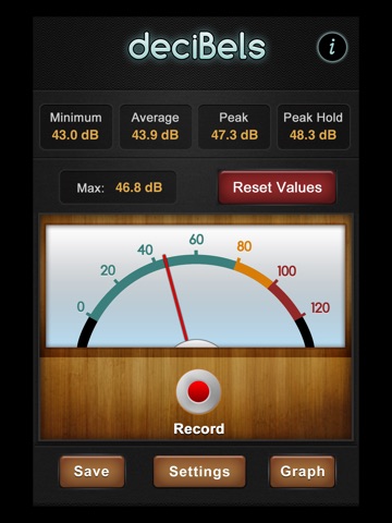 Info: This provides information about what the dB values actuall mean, and its accessed by tapping the little "i" icon on the default screen.