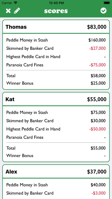 At the end of each round, enter which cards each player has in their hand and in their stash and the app does the rest.