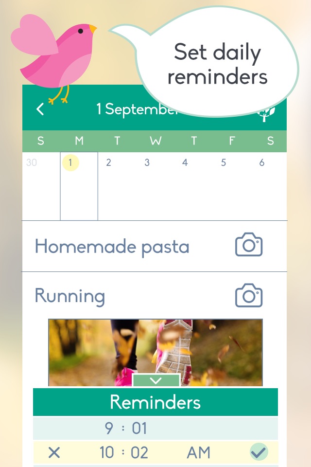 Set a reminder so you never forget to make an entry.