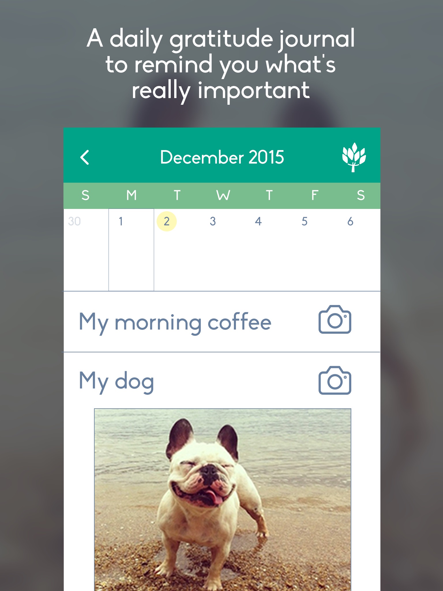 Add photos to your entries and change your mood colour with Gratitude Journal Pro.