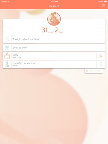 This app guides you through your pregnancy week-by-week and gives you advice on healthy food, relationship, examinations and everything else you need to know. Furthermore, the app includes a series of useful and fun tools, which help you keep track of midwifery-consultations, exercises, diary entries and photos.