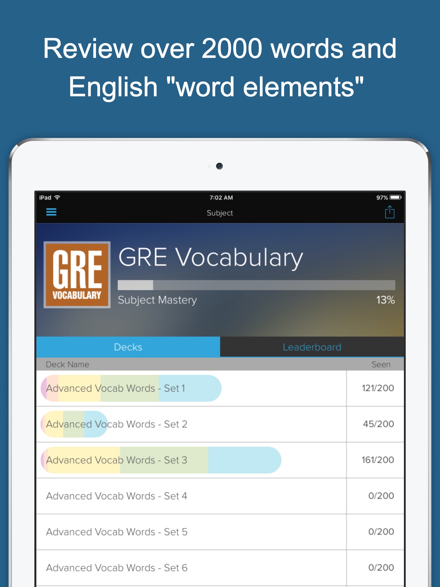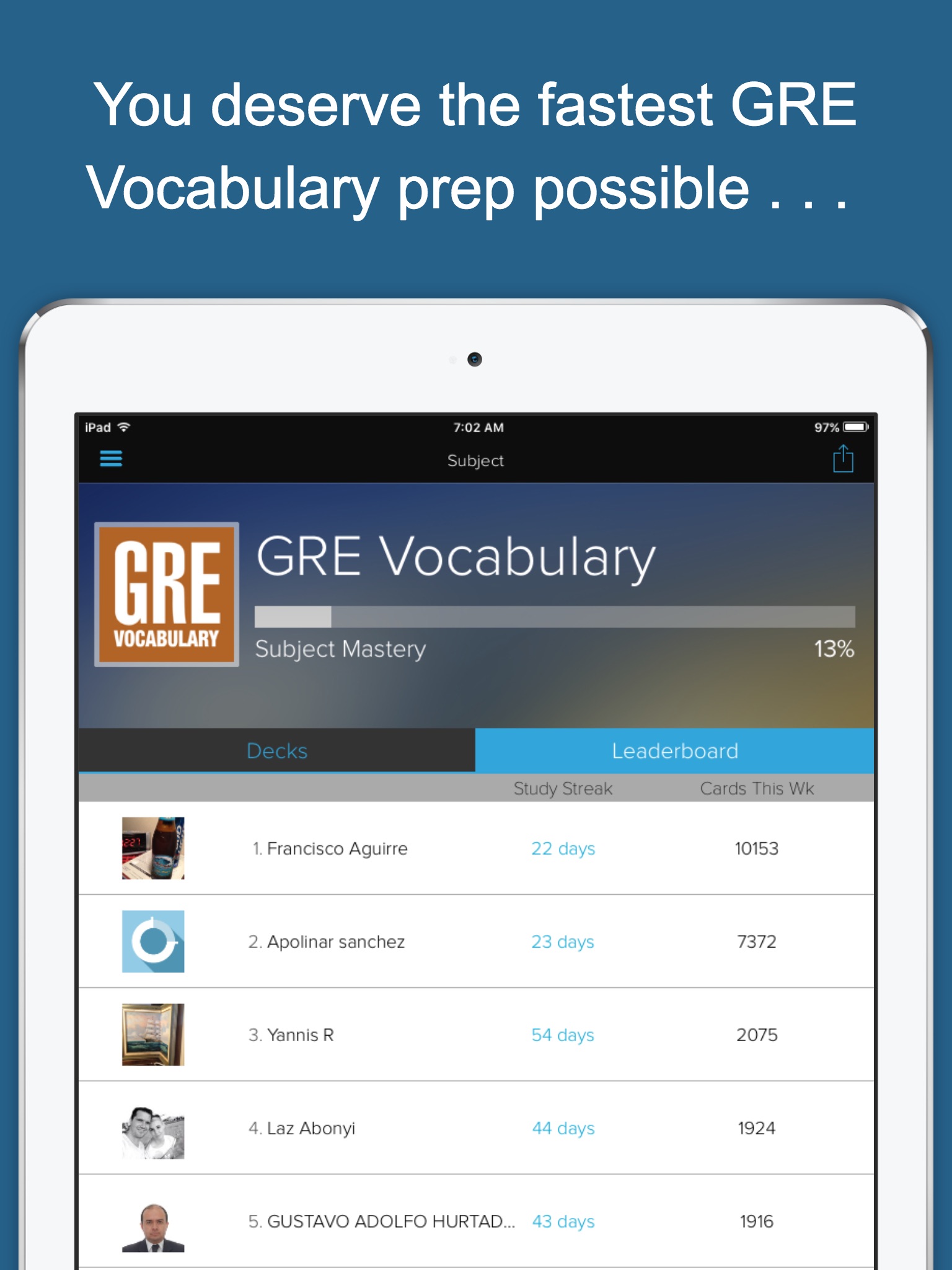 Recent #1 Ranked Education App - Improve your GRE vocabulary FASTER than with any other vocab app. Applying the latest in cognitive science techniques, Brainscape helps you efficiently learn over 2,000 “dynamic flashcards” covering both vocabulary words and their roots.