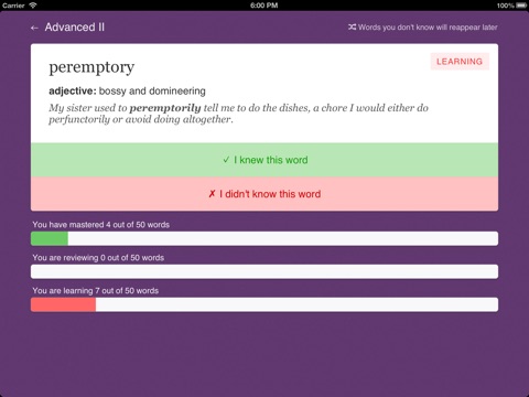 “The collection of words is great. I liked the visual indication of the three categories and their progress.”